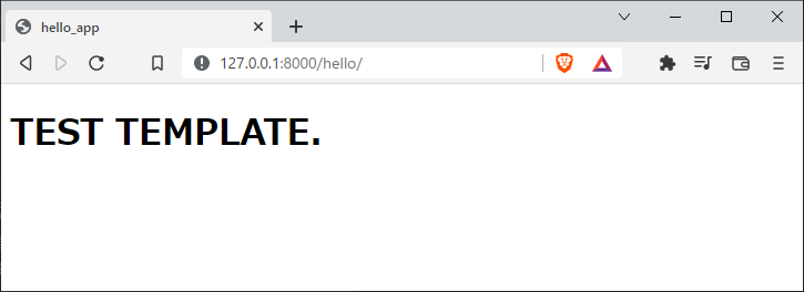 <!DOCTYPE html> <html lang="ja"> <head> <meta charset="utf-8"> <title>hello_app</title> </head> <body> <h1>TEST TEMPLATE.</h1> </body> </html>